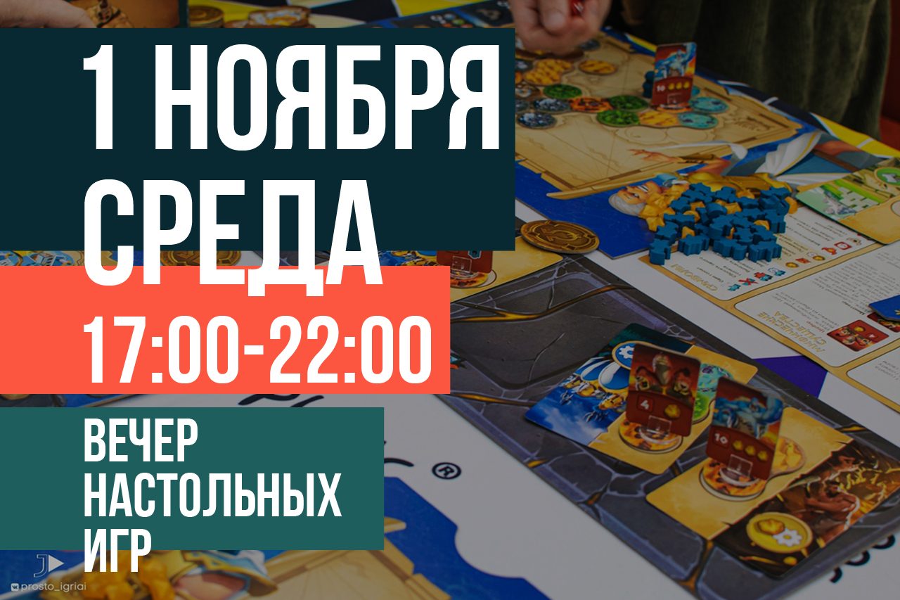 В среду, 1 ноября, с 17:00 до 22:00 играем в настолки, знакомимся и открываем новое.