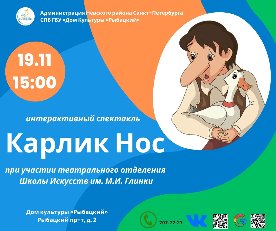 19 ноября в 15:00 в Доме культуры пройдет спектакль «Карлик Нос» в исполнении учащихся театрального отделения Школы искусств Им. Глинки М. И.